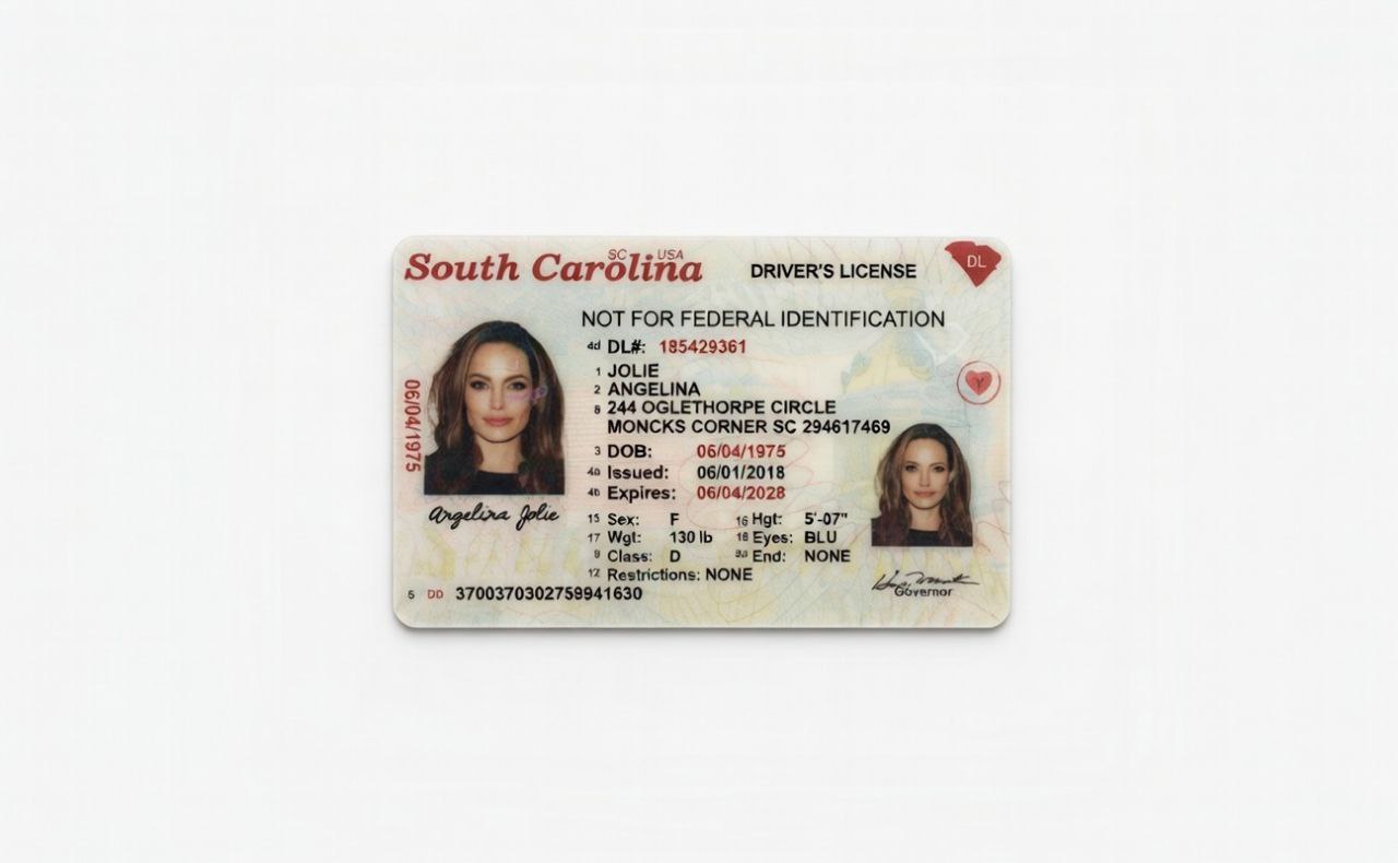 - Realistic Design: Mimics actual South Carolina state IDs, including Statehouse, Palmetto Tree, Crescent moon, state flower, bird, reptile, and flag-inspired elements, for seamless acceptance.